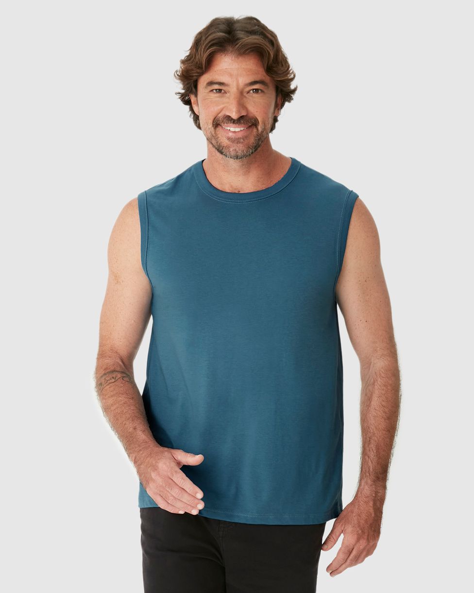 Regata Básica Masculina Machão Decote Redondo Em Algodão Azul - G