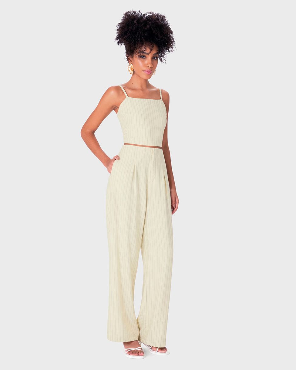 • Regata cropped em tecido risca de giz