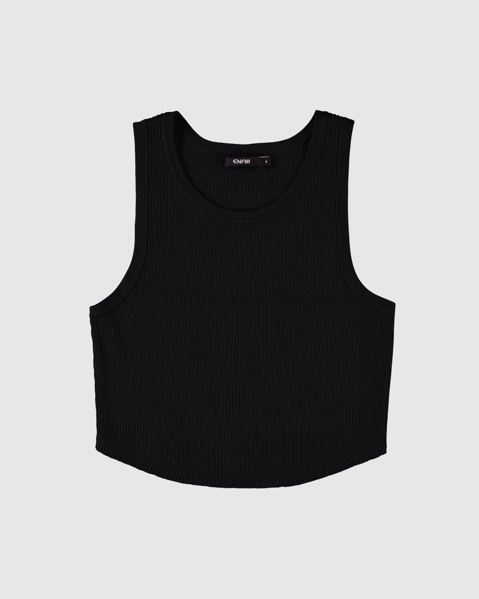 Regata Cropped Feminina Barra Arredondada Em Tricô - ENFIM