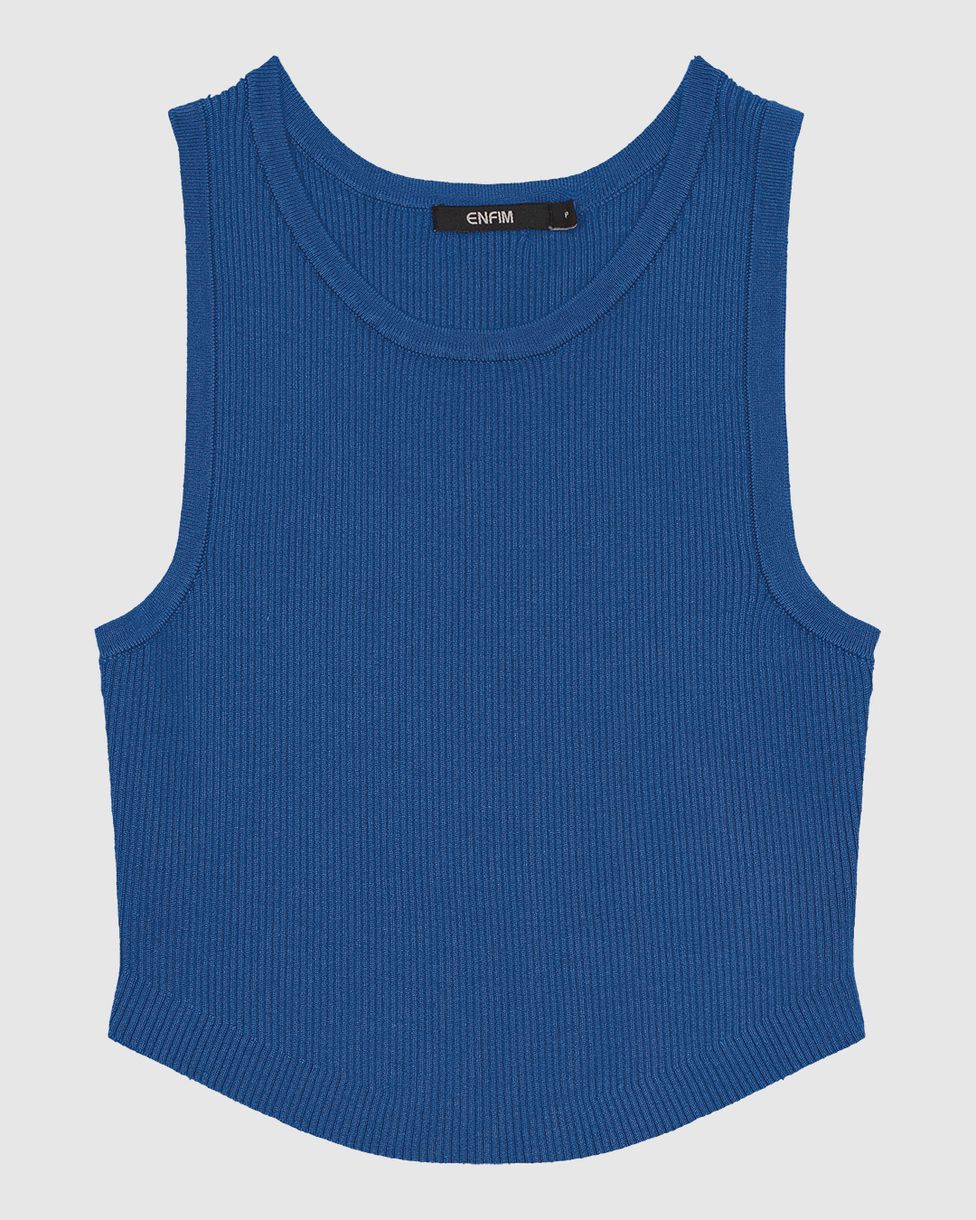 Regata Cropped Feminina Barra Arredondada Em Tricô - ENFIM