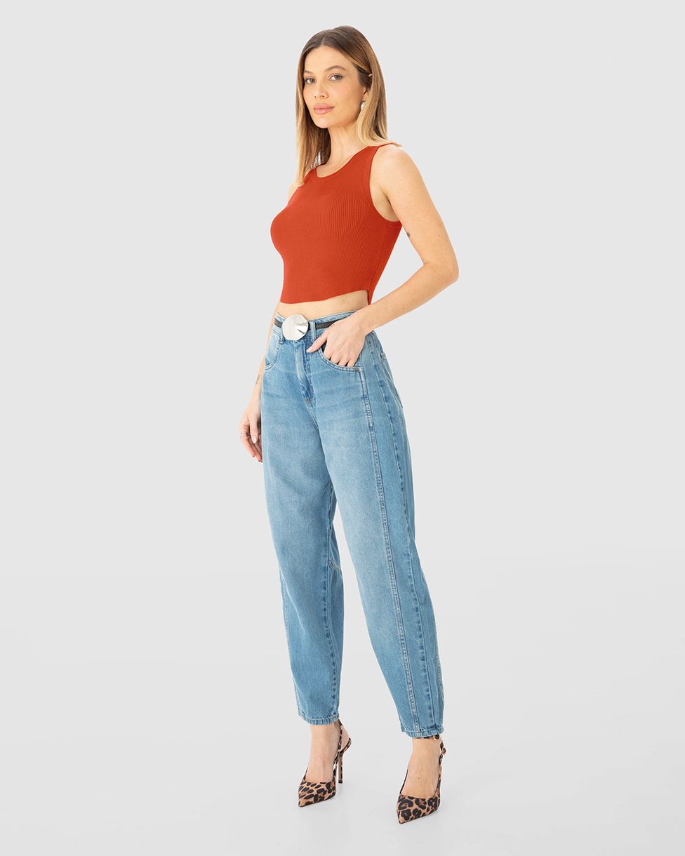Regata Cropped Feminina Barra Arredondada Em Tricô - ENFIM