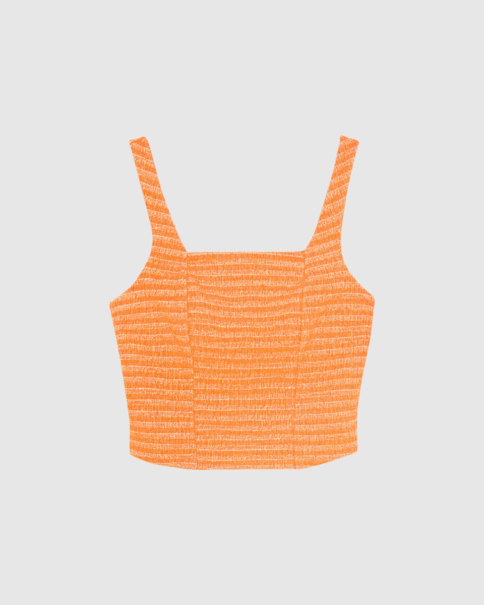 Regata Cropped Feminina Decote Quadrado Em Malha Tweed