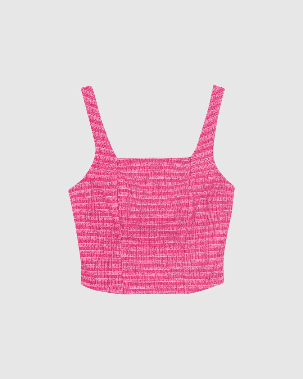 Regata Cropped Feminina Decote Quadrado Em Malha Tweed