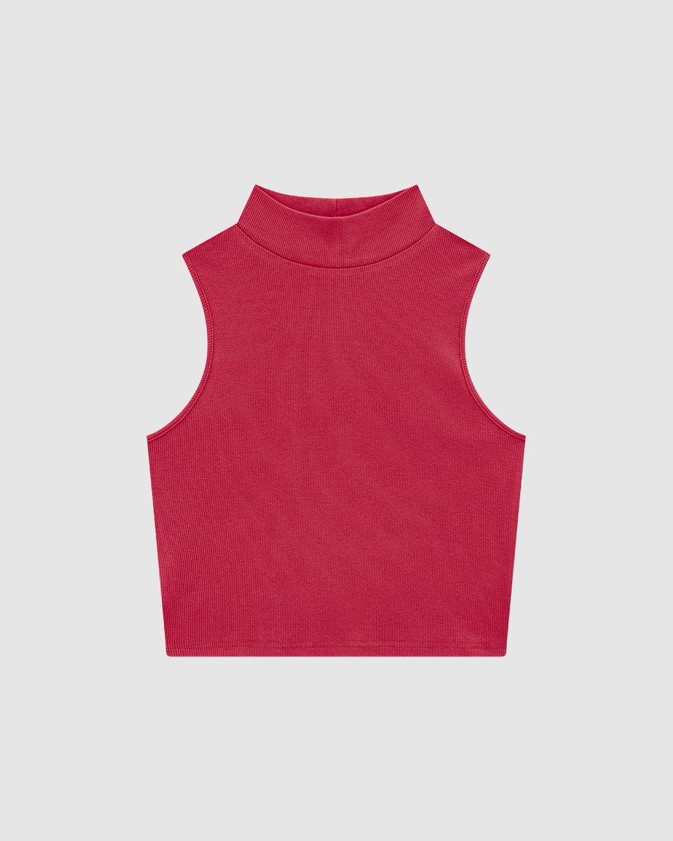 FemininoBlusas e CamisetasBlusas BásicasRegata Cropped Feminina Gola Alta Em Ribana - ENFIM