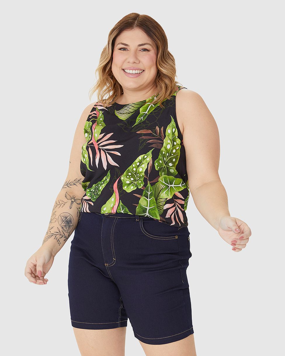 Regata Cropped Feminina Plus Size Estampada Em Viscose