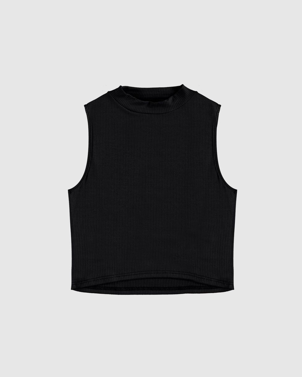 Regata Cropped Infantil Menina Gola Alta em Malha Viscose Canelada Malwee Kids