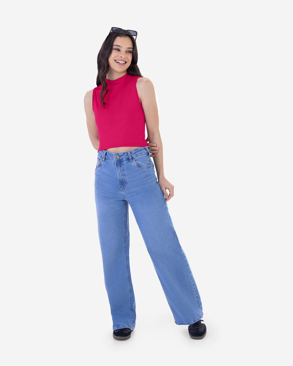 Regata Cropped Infantil Menina Gola Alta em Malha Viscose Canelada Malwee Kids