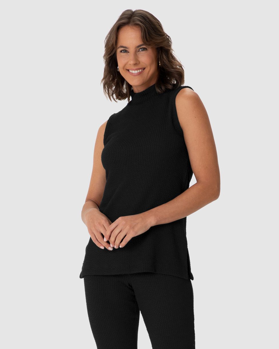 Regata Feminina Alongada Gola Alta Fenda Lateral Em Malha Texturizada