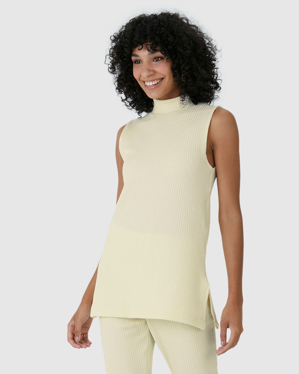 Regata Feminina Alongada Gola Alta Fenda Lateral Em Malha Texturizada