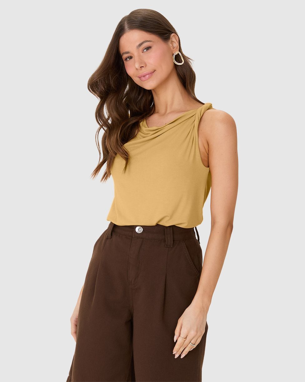 FemininoBlusas e CamisetasRegatasRegata Feminina Assimétrica Detalhe Torção Ombro Em Viscose Stretch