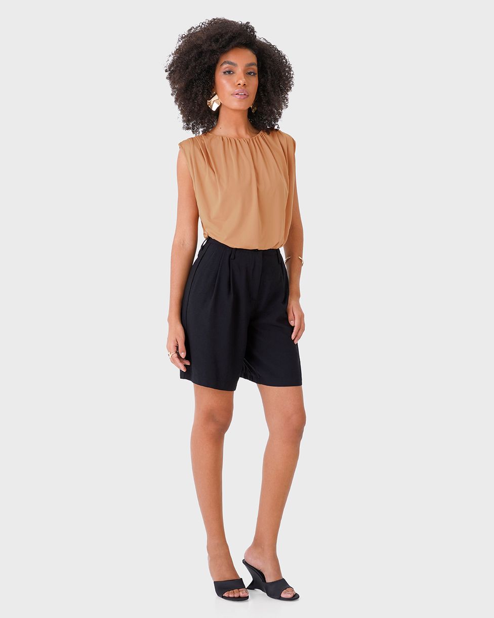 Regata Feminina Balonê Pregas Frontais Em Malha Conforto Dry - ENFIM Marrom - G