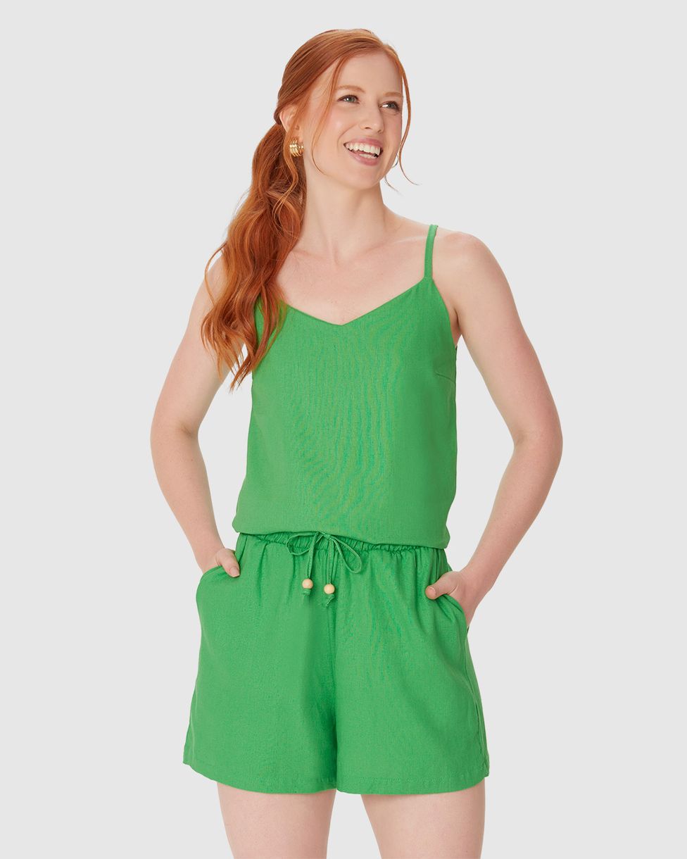 Regata confeccionada em viscolinho leve e respirável, esta regata proporciona um toque suave e fresco na pele, garantindo conforto e bem-estar ao longo do dia. O decote V e as alças finas valorizam a silhueta, proporcionando um visual delicado e feminino.