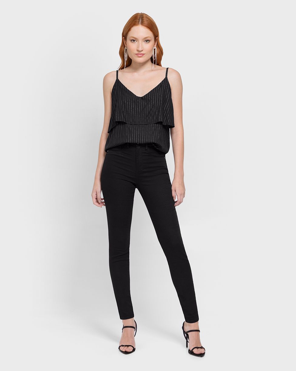 Regata Feminina Evasê Alça Fina E Camadas Em Viscose Lurex - ENFIM