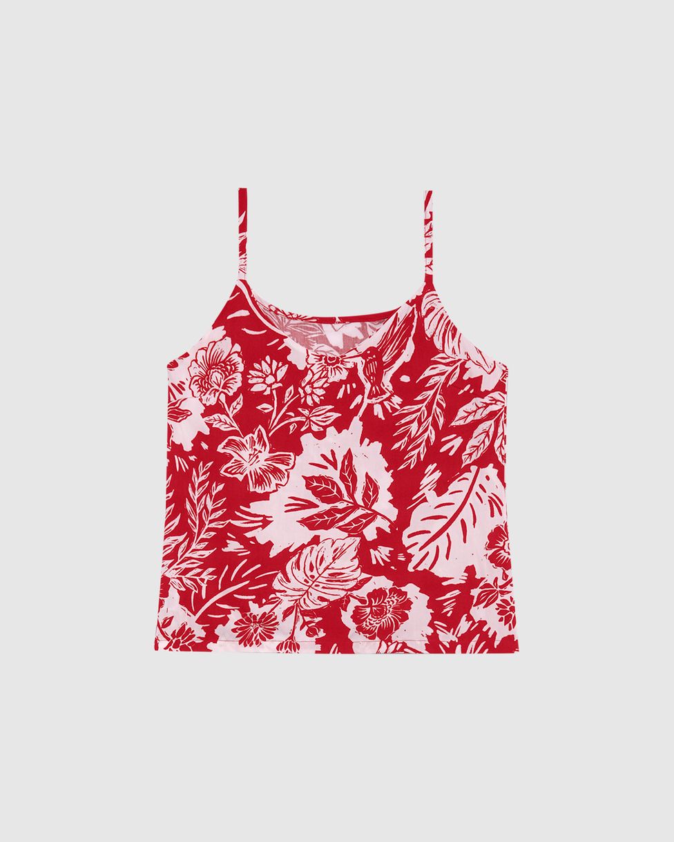 Regata Feminina Folhagem Alça Fina Com Regulador Em Viscose