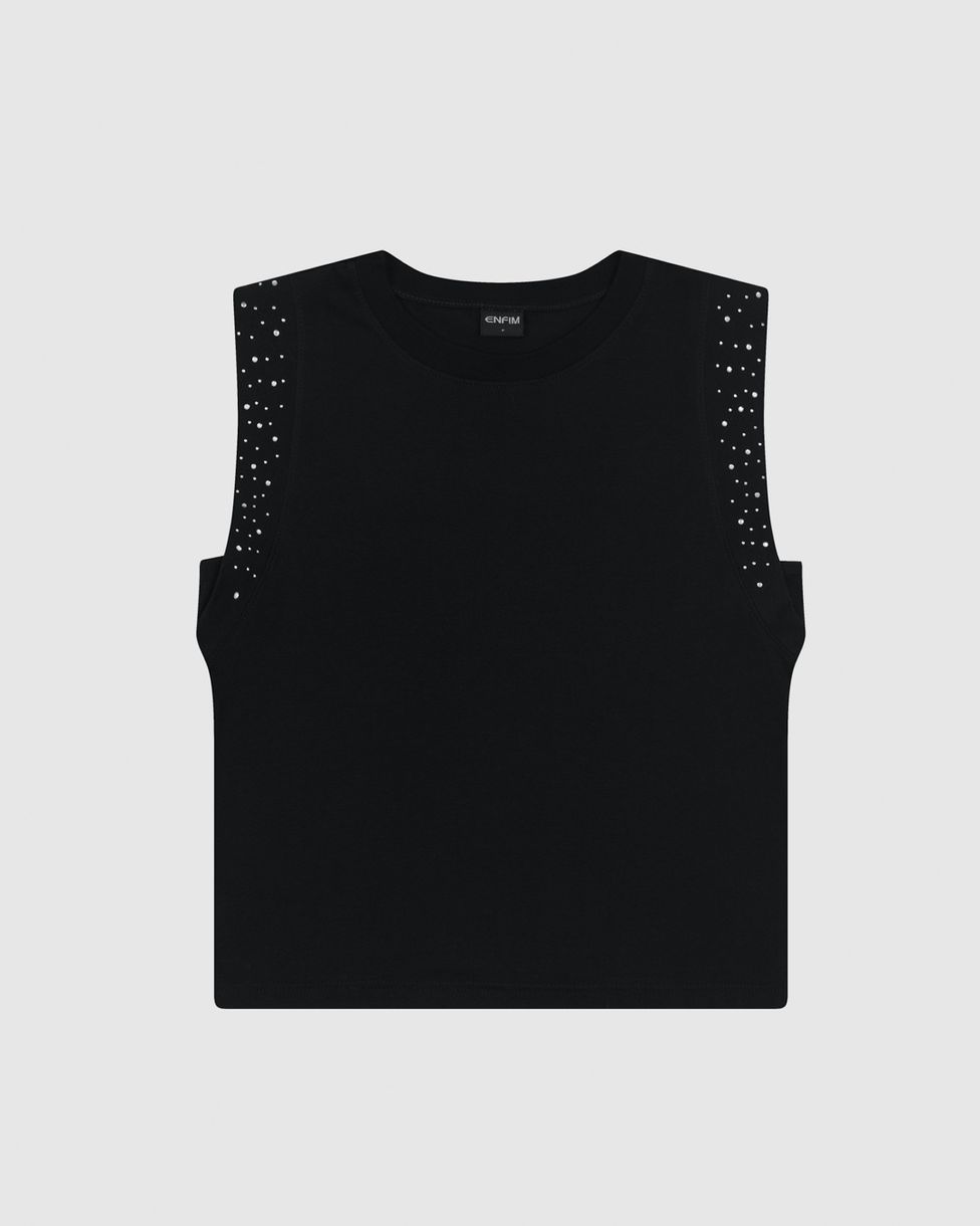 Regata Feminina Reta Aplicação Strass Em Algodão - ENFIM