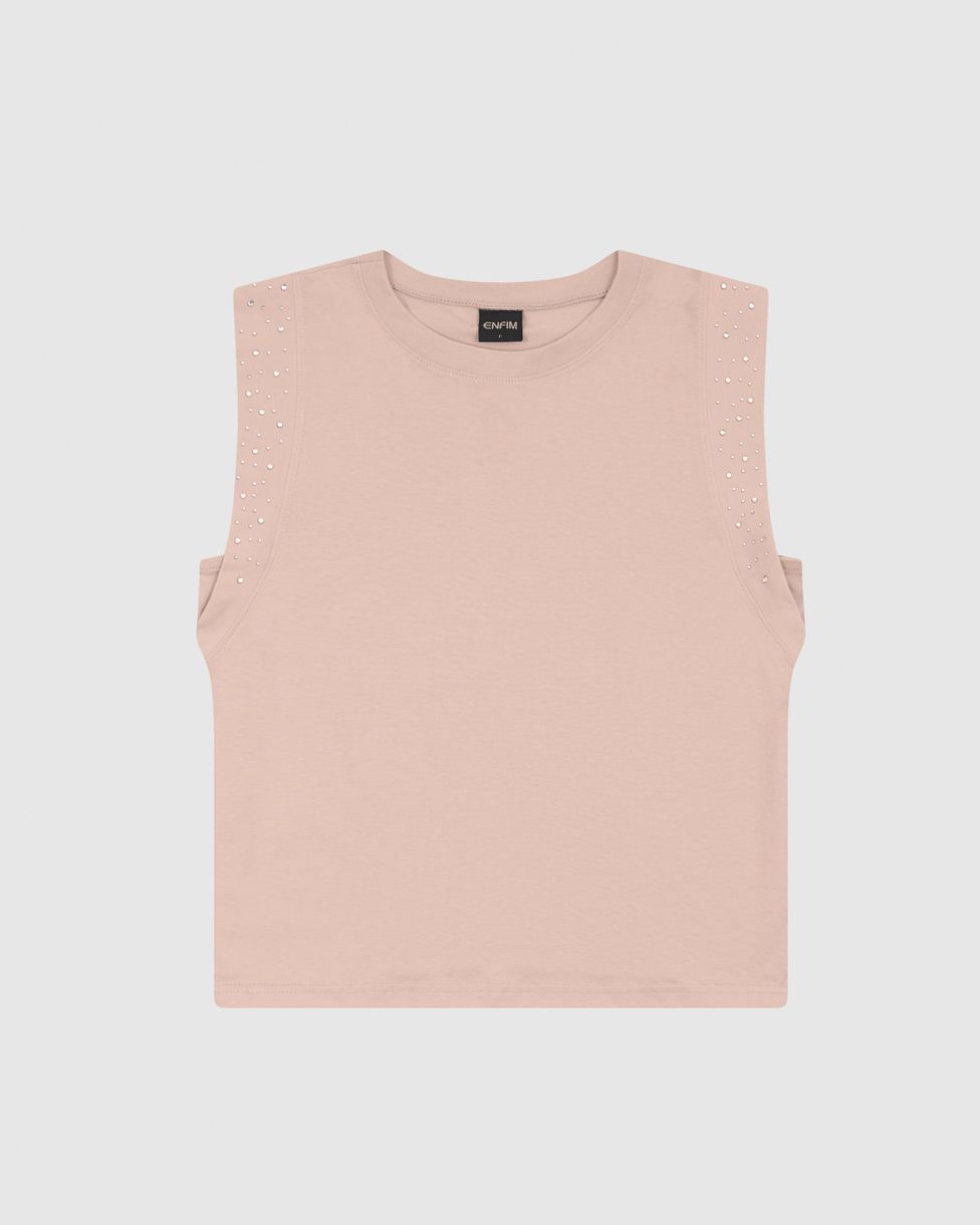 Regata Feminina Reta Aplicação Strass Em Algodão - ENFIM