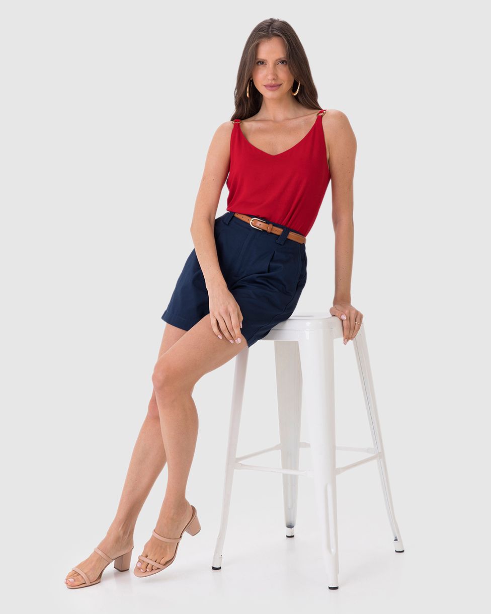 Regata Feminina Reta Decote V Alça Detalhe Argola Em Viscose Vermelho - G