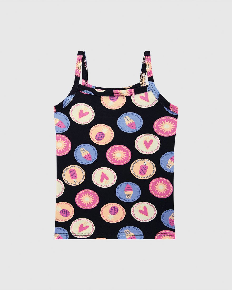 Regata Infantil Menina Alça Fina Estampada Em Algodão Malwee Kids