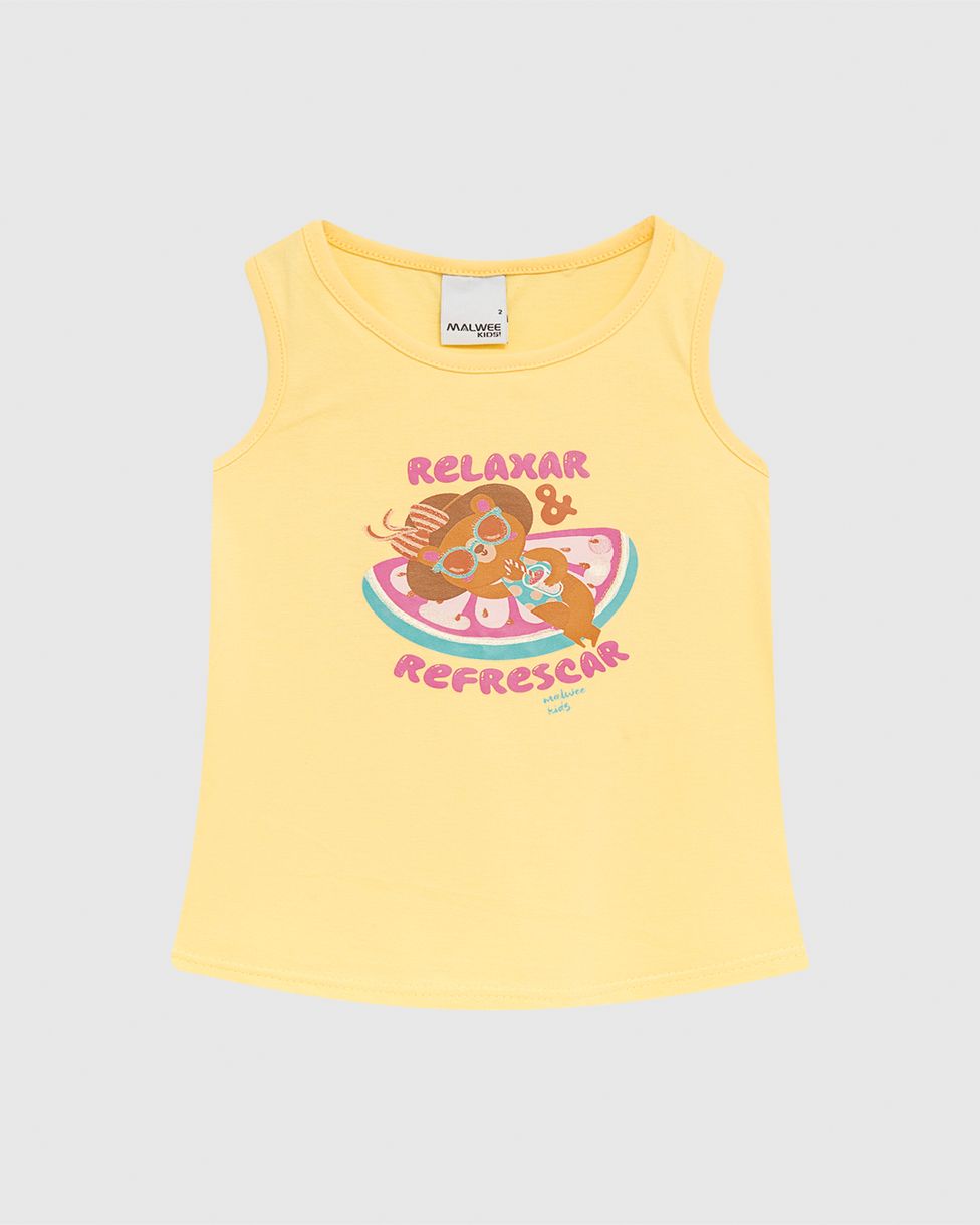 Regata Infantil Menina Evasê Estampa Com Glitter Em Algodão Malwee Kids