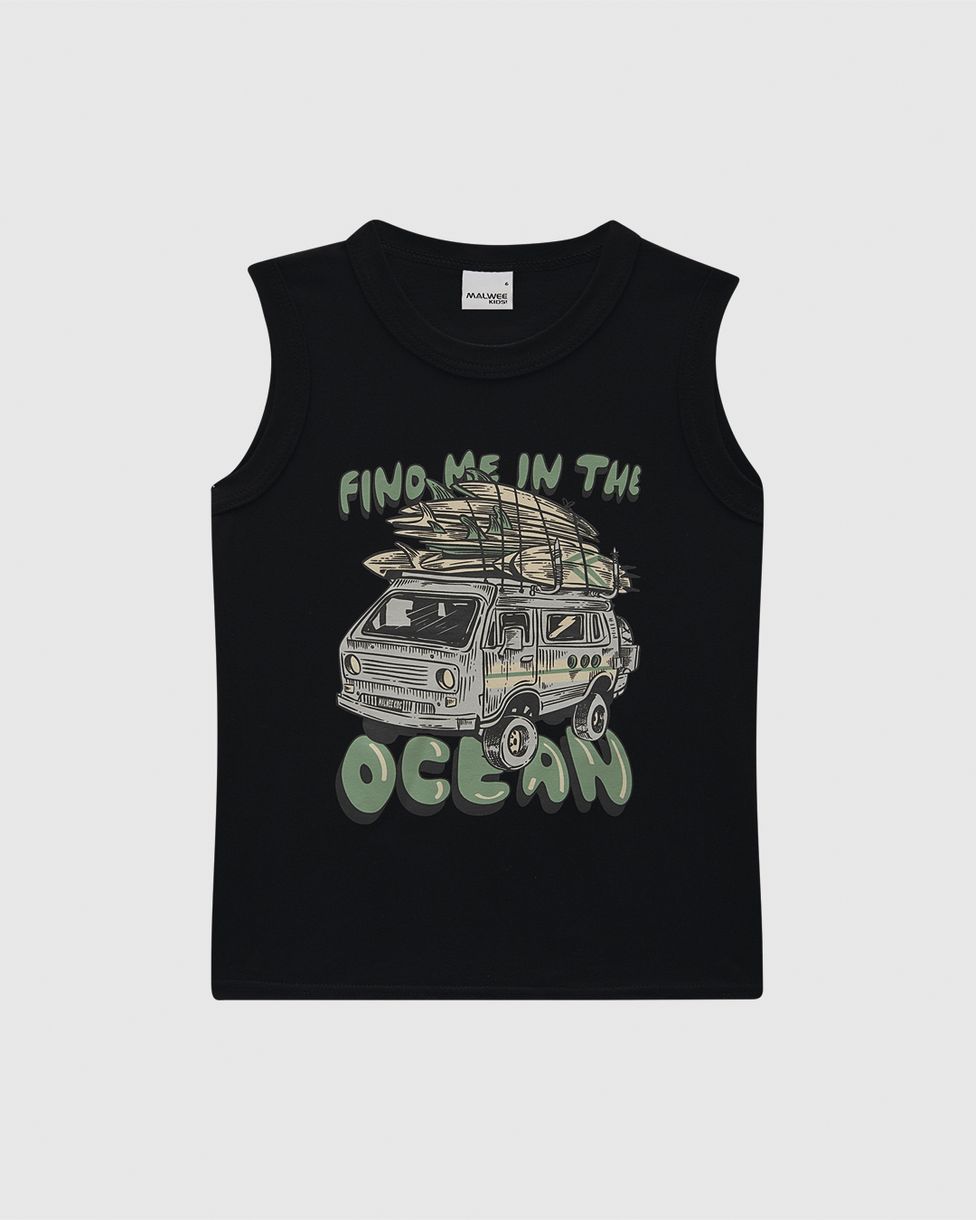 Regata Infantil Menino Alça Larga Estampa Frontal Em Algodão Malwee Kids