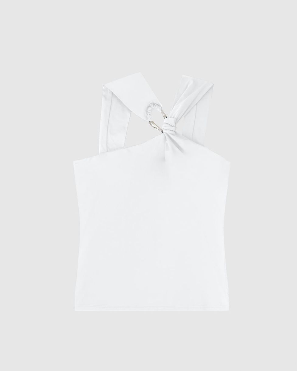 Regata Justa Feminina Alça Detalhe Argola Metálica Em Malha Poliamida - ENFIM. Com design moderno e versátil, a regata justa ENFIM realça a silhueta e proporciona conforto absoluto. Seu diferencial está na argola metálica, que dá um toque elegante e sofisticado. Produzida em malha poliamida, é ideal para compor looks frescos e estilosos na primavera/verão.