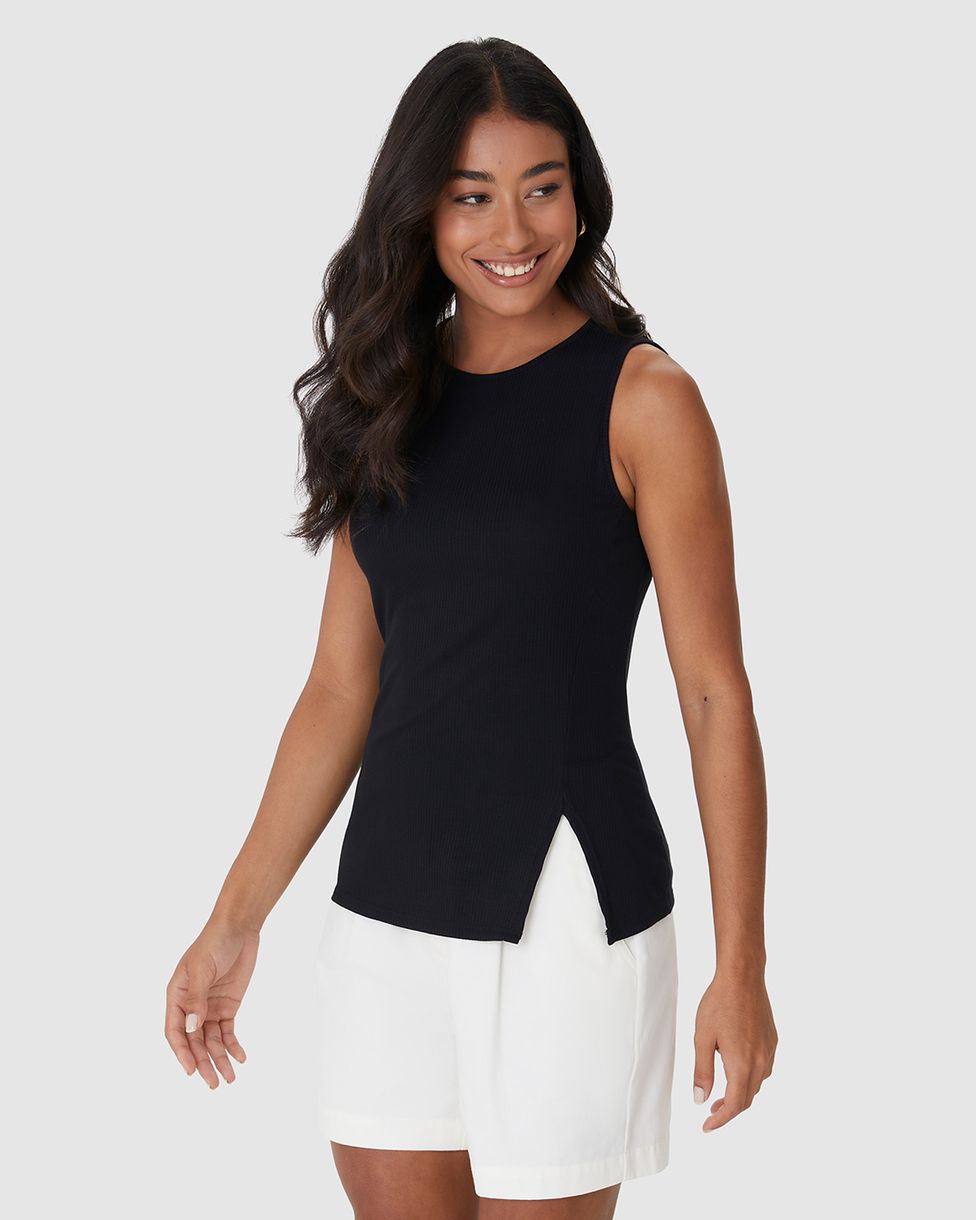 Regata Justa Feminina Detalhe Abertura Lateral Em Malha Viscose Canelada