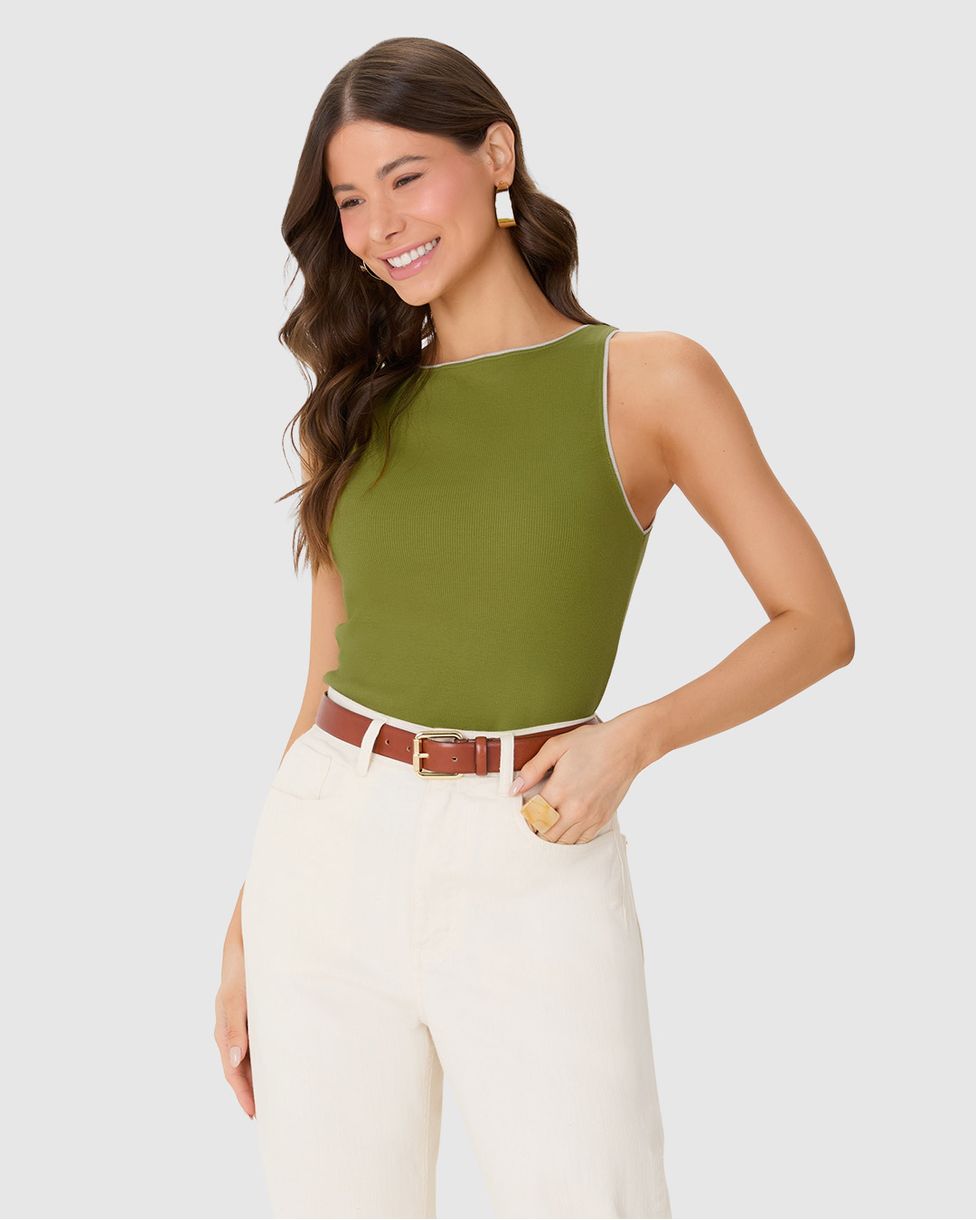 Regata Justa Feminina Detalhe Costura Contraste Em Ribana