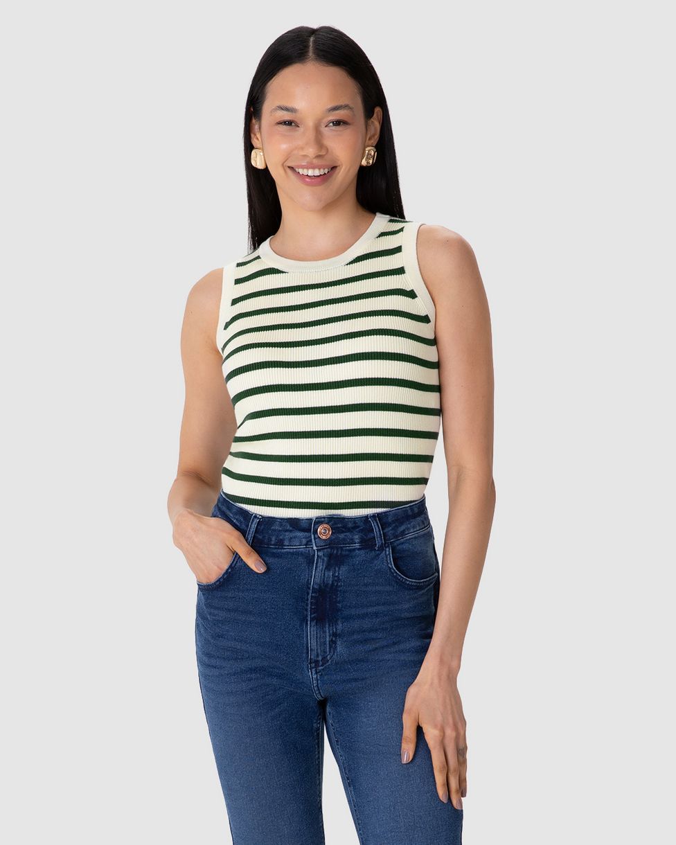 Regata Justa Feminina Estampa Listrada Em Tricô