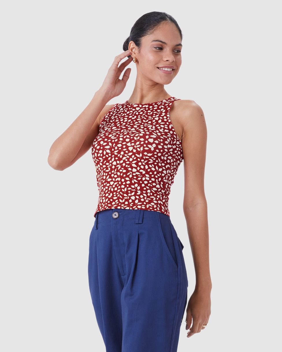 Regata Justa Feminina Estampada Em Algodão Vermelho - G