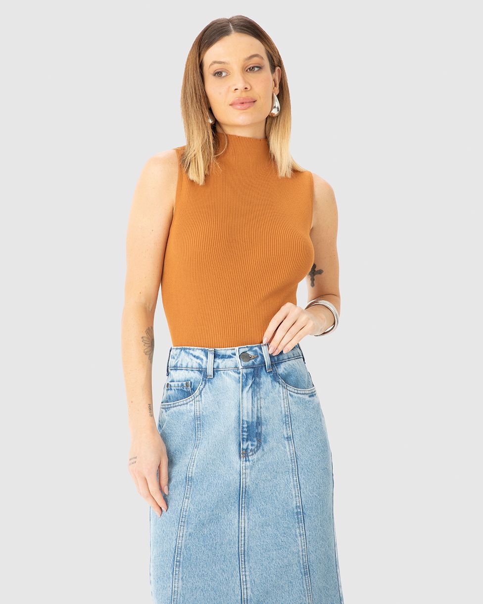 Regata Justa Feminina Gola Alta Em Tricô - ENFIM