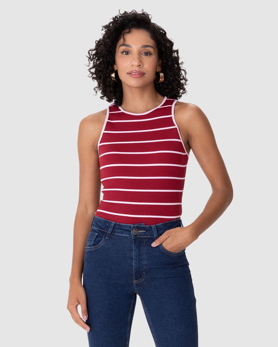 Regata Justa Feminina Listrada Em Ribana Vermelho - G