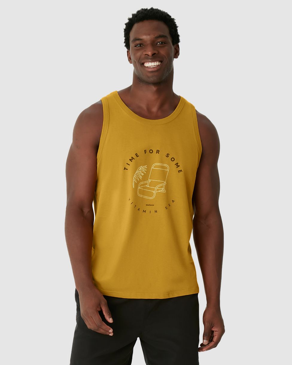 Regata Masculina Alça Estreita Com Estampa Em Algodão Amarelo - M