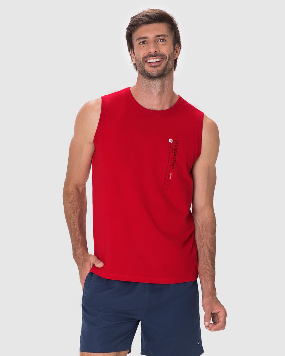 Regata Masculina Decote Redondo Alça Larga Estampa Frontal Em Algodão Vermelho - P