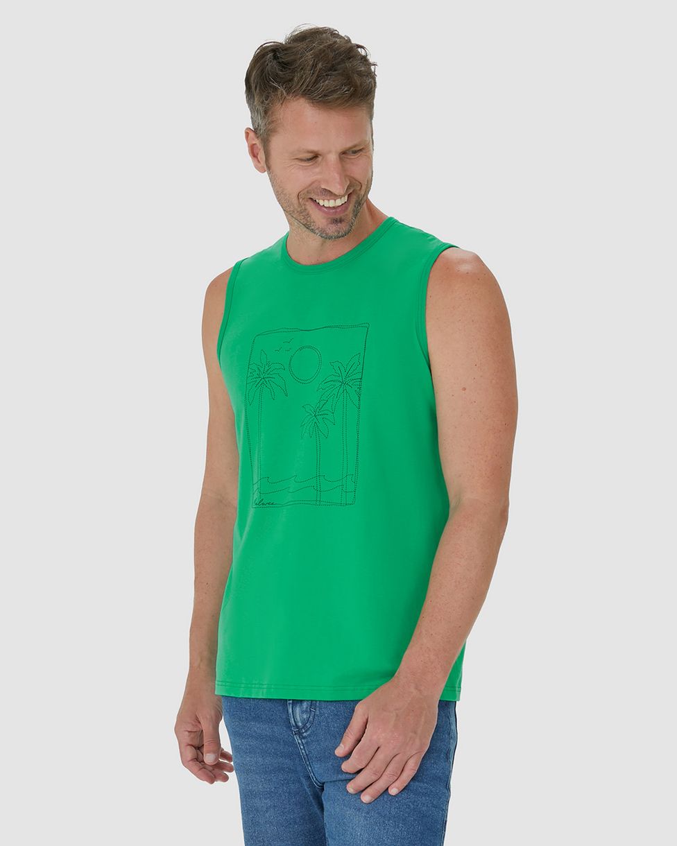 A Regata Masculina Ilustração Frontal Em Algodão é a escolha perfeita para unir conforto e estilo nos dias mais quentes. Confeccionada em malha algodão, esta regata oferece um toque suave e respirável na pele, proporcionando bem-estar durante todo o dia. A estampa adiciona um toque moderno e cheio de personalidade para a peça.
