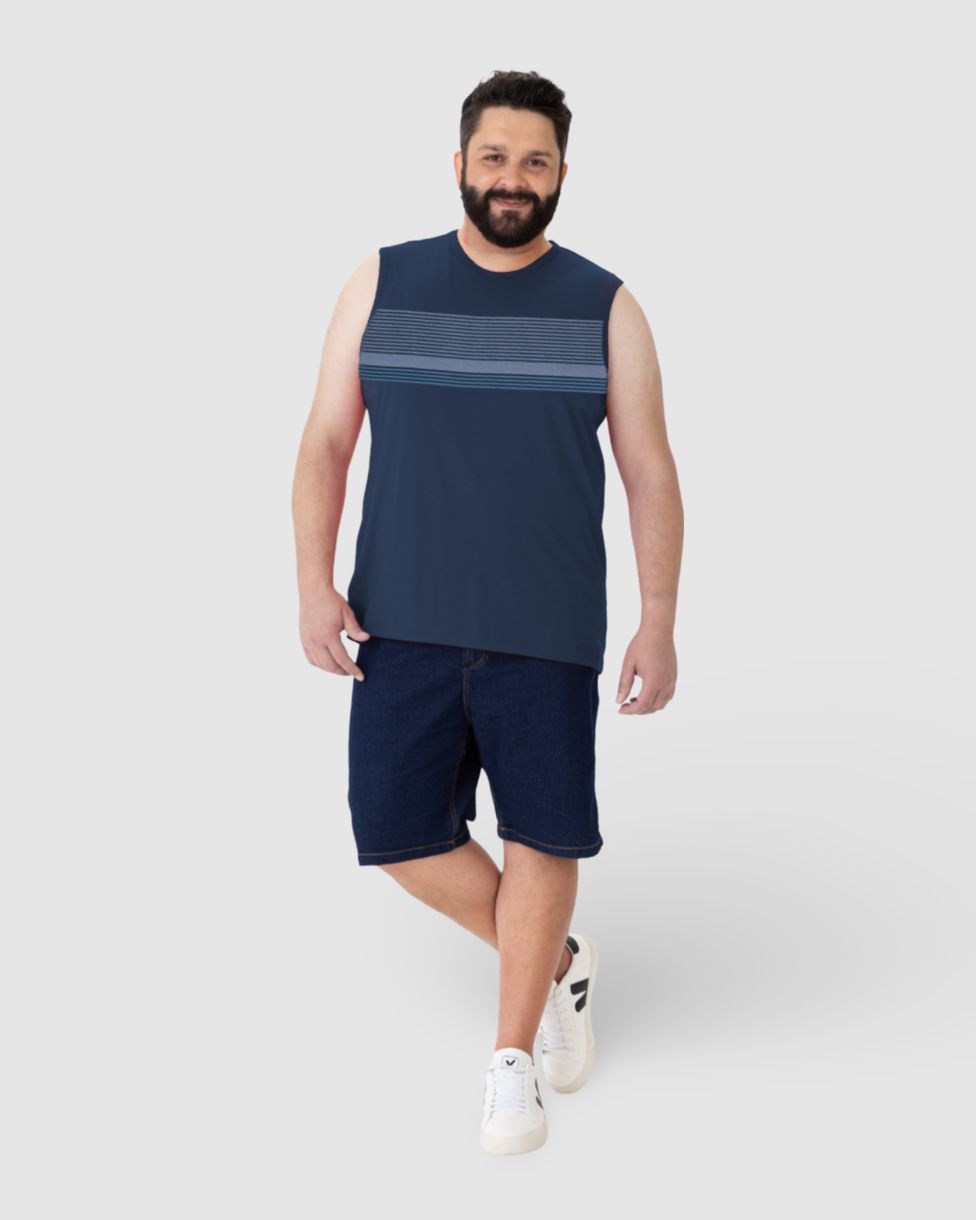 Regata Masculina Plus Size Listrado Frontal Em Algodão
