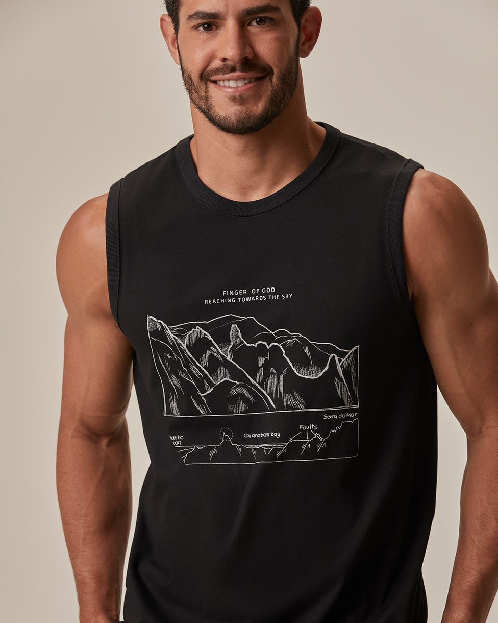 Regata Masculina Regular Alça Larga Estampa Frontal Em Algodão