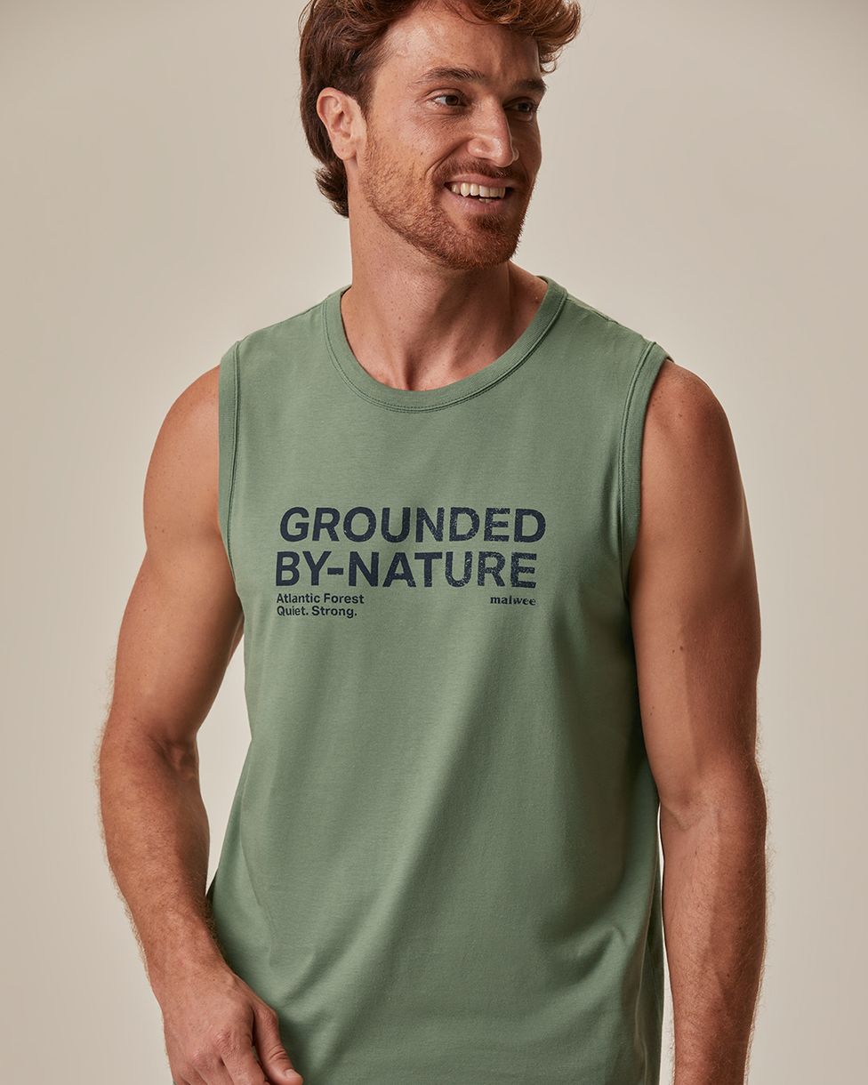 Regata Masculina Regular Alça Larga Estampa Frontal Em Algodão Verde - XGG