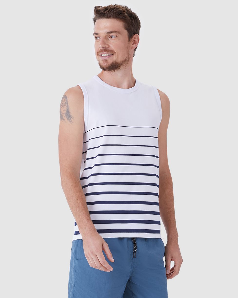 Regata Masculina Regular Estampa Frontal Listrada Em Algodão