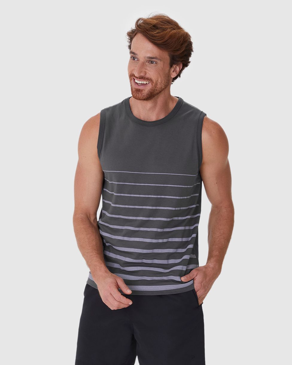 Regata Masculina Regular Estampa Frontal Listrada Em Algodão Cinza - GG