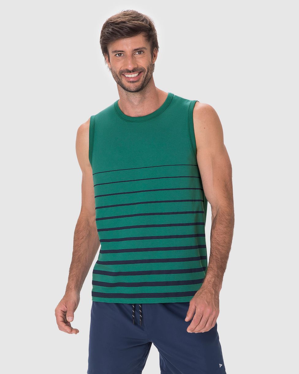 Regata Masculina Regular Estampa Frontal Listrada Em Algodão Verde - GG