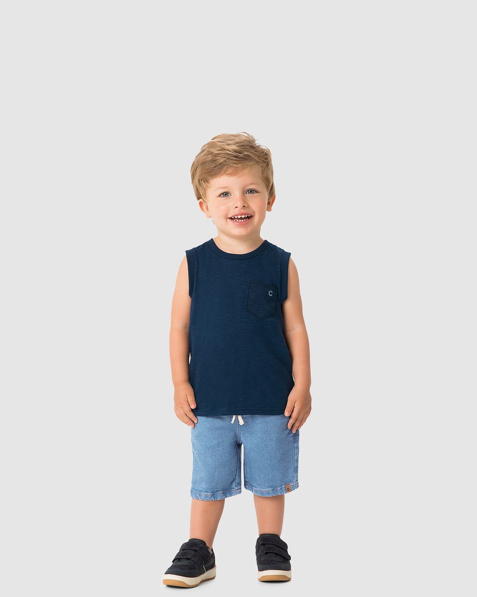 Regata Menino Bolso Frontal Em Malha Rajada - Carinhoso