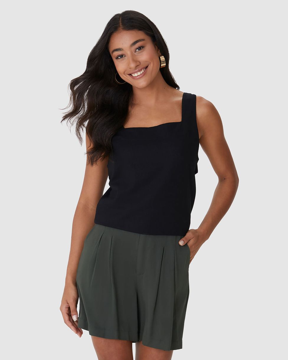 Aposte em frescor e elegância com a Regata Reta Feminina Amarração Costas. Confeccionada em viscolinho, traz modelagem confortável e detalhe de amarração nas costas, perfeita para compor looks modernos e cheios de estilo no verão.