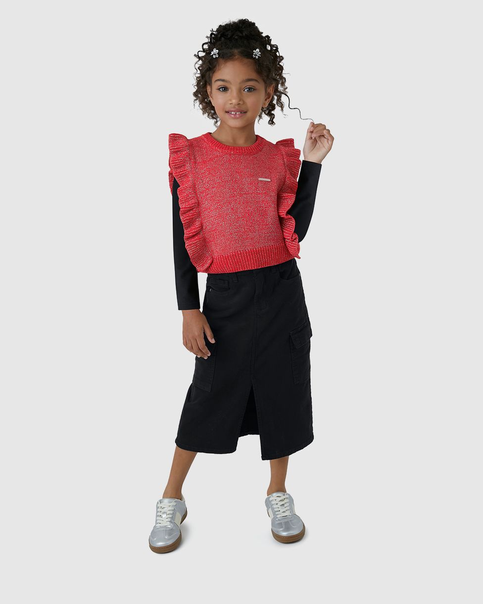 A Saia Menina Midi Cargo Em Sarja Com Elastano - Carinhoso é sinônimo de estilo e praticidade. Com uma modelagem moderna e funcional, é ideal para criar looks cheios de personalidade, acompanhando as meninas em qualquer ocasião com conforto.