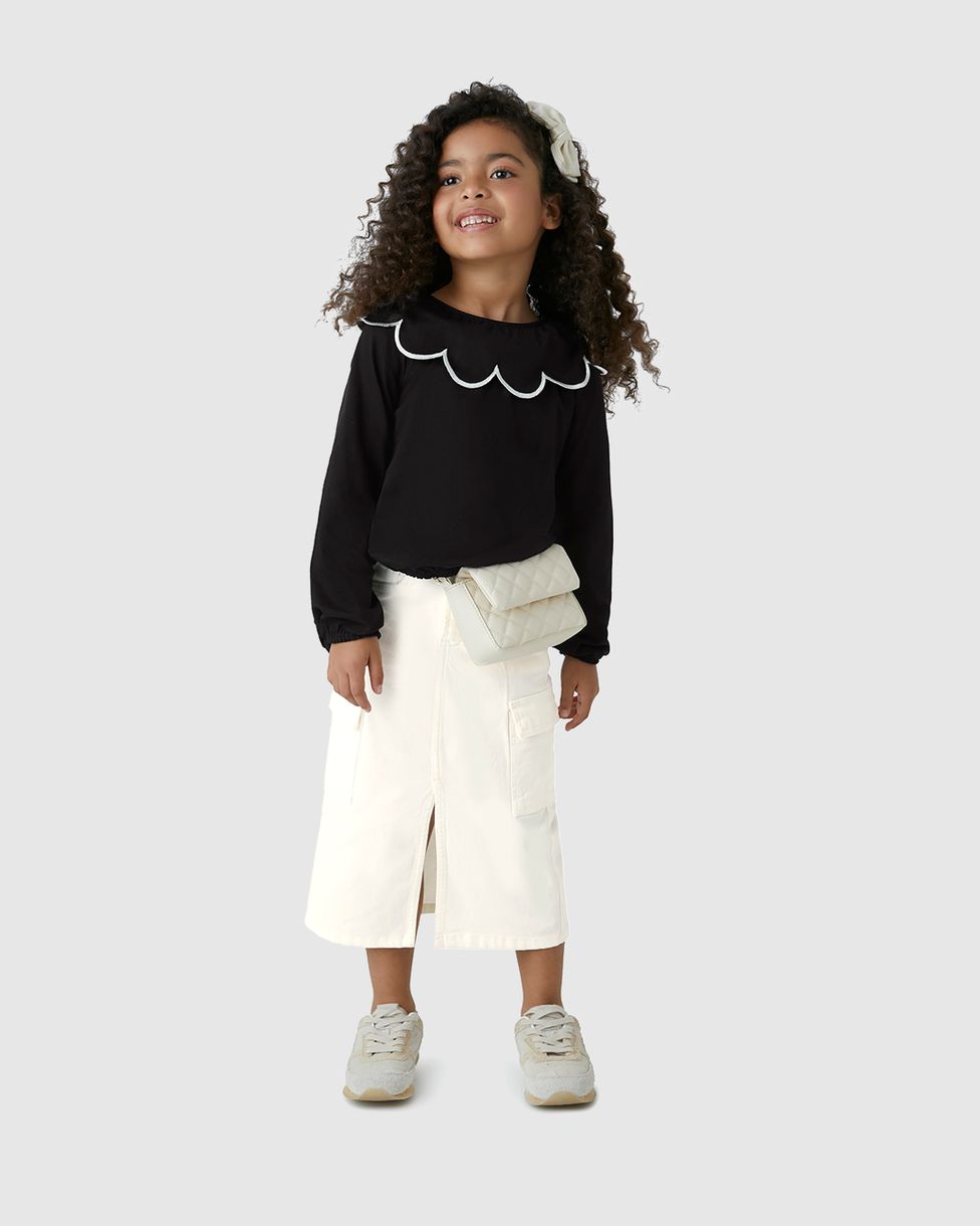 A Saia Menina Midi Cargo Em Sarja Com Elastano - Carinhoso é sinônimo de estilo e praticidade. Com uma modelagem moderna e funcional, é ideal para criar looks cheios de personalidade, acompanhando as meninas em qualquer ocasião com conforto.