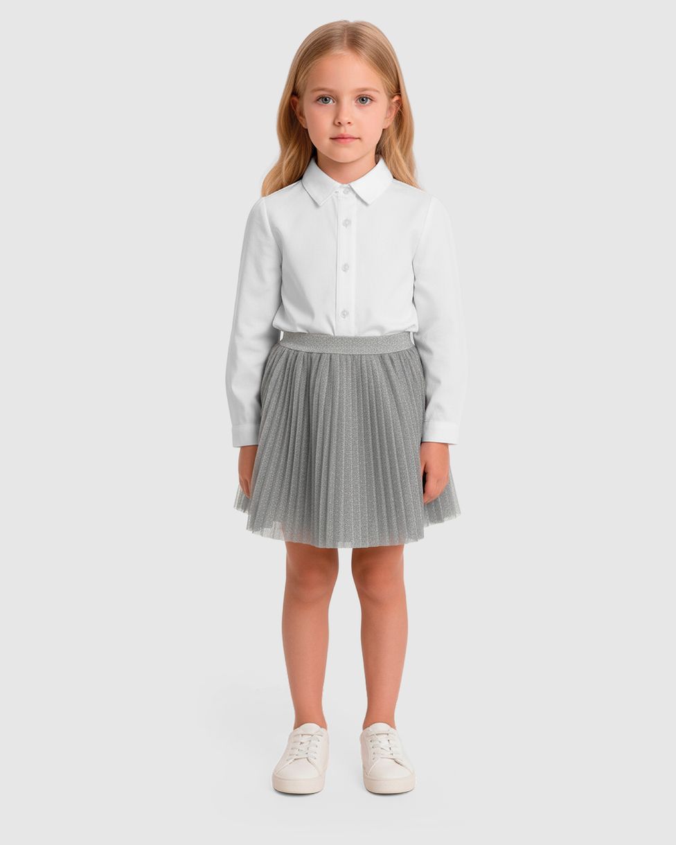 Saia Menina Pregas Em Tecido Plumetis Brilho - Carinhoso
