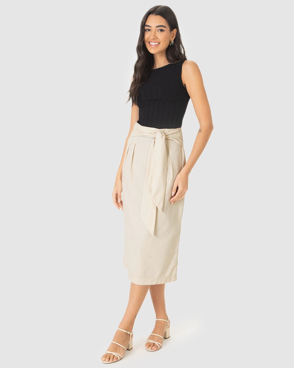 Saia Midi Feminina Amarração Frontal Fenda Costas Em Viscolinho