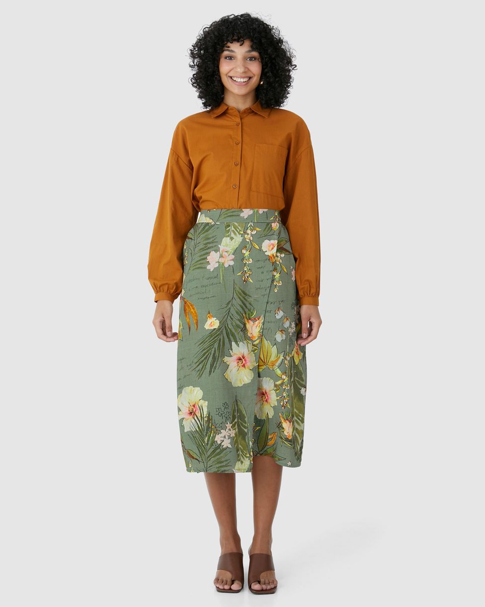 FemininoSaiasSaias MidiSaia Midi Feminina Assimétrica Em Viscolinho Texturizado