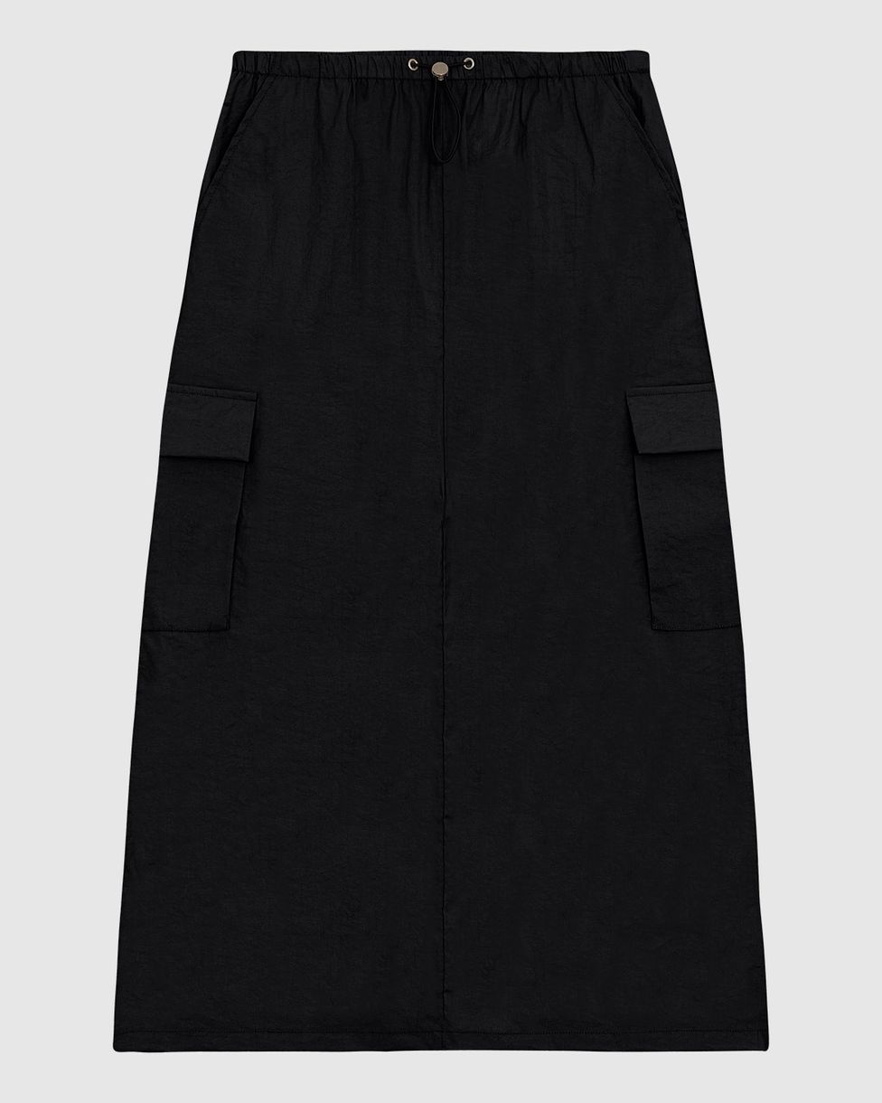 Esta saia midi une praticidade e estilo em uma peça versátil. Feita de viscose texturizada, ela proporciona conforto e um visual sofisticado, graças ao design moderno com bolsos cargo e fenda nas costas.