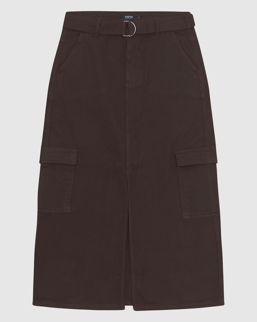 Saia Midi Feminina Cargo Cintura Média Em Sarja Stretch - ENFIM