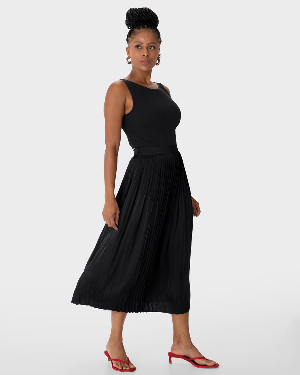 Saia Midi Feminina Cintura Alta Em Tecido Acetinado Plissado - ENFIM